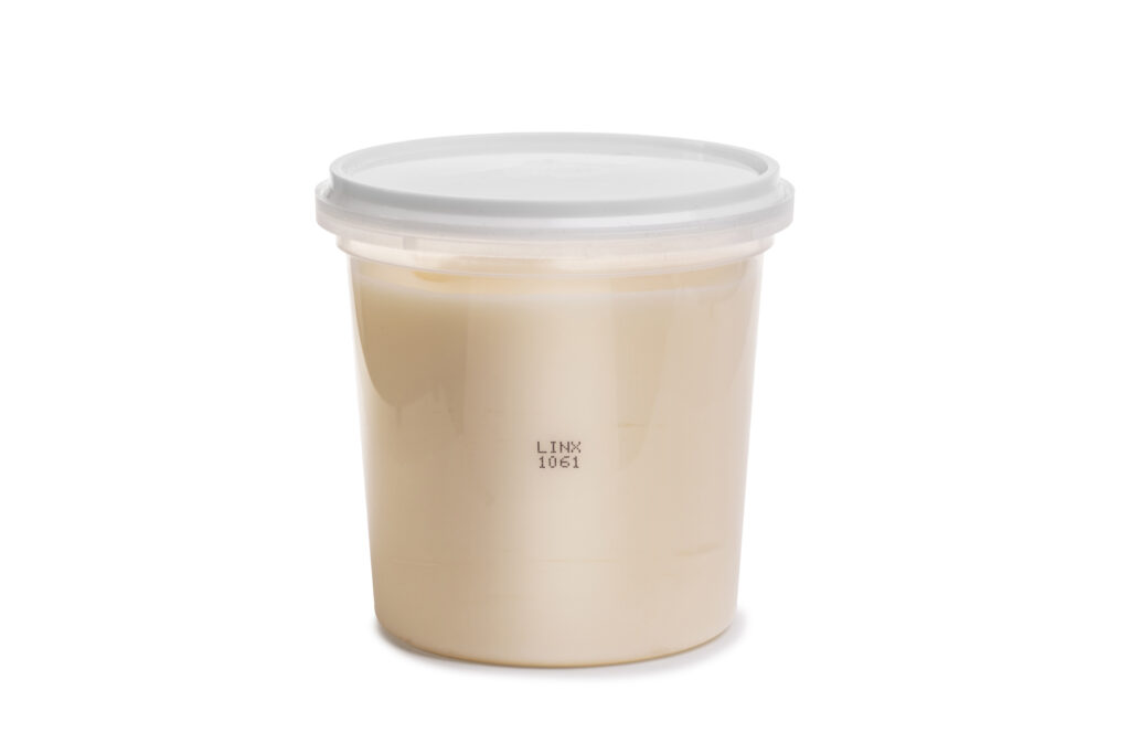 En vanlig och mycket pålitlig lösning är märkning med Continuous Inkjet (CIJ). Denna teknik använder snabbtorkande, kemikalieresistent bläck som fäster direkt på hinkens yta – oavsett om den är plan, ojämn eller lätt fuktig.