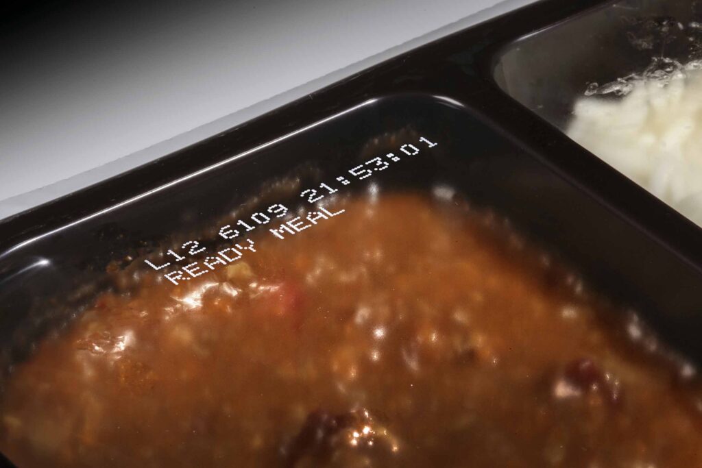 TTO är den vanligaste och mest precisa metoden för mattråg som packas i flowpack- eller topsealmaskiner. Märkningen sker direkt på förpackningsfilmen eller etiketten innan den förseglas. Resultatet blir skarpa, högupplösta utskrifter av bäst-före-datum, batchnummer, logotyper och QR-koder.