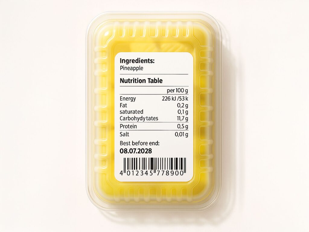 Etikettering av fram-, topp- och bottensida med en enda etikett. Ger visuellt sammanhängande information och bra hållfasthet.